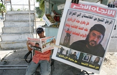 newspaper Alitijah Alakhar showing a picture of al-Qaida in Iraq terrorist