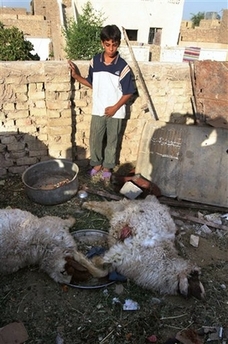 his two sheep killed in crossfire between insurgents and Iraqi and