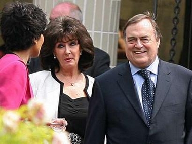 John Prescott (R) and his wife Pauline (C) react at the opening of the