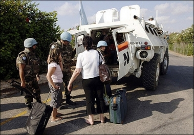 the United Nations Interim Force in Lebanon (UNIFIL) evacuate a family in