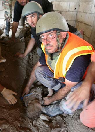 victim of an Israeli air raid on Qana that killed 56 people, in south Lebanon,