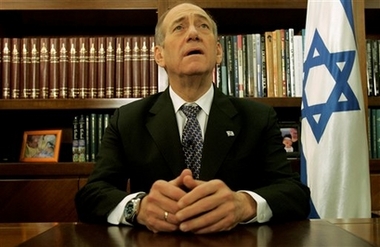 office in Jerusalem Wednesday Aug. 2, 2006. Prime Minister Ehud Olmert