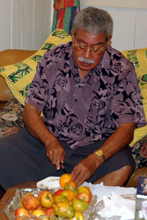 Fiji's Prime Minister Laisenia Qarase eats breakfast at his Suva residence December 5, 2006. Qarase said he was under house arrest on Tuesday after heavily armed troops surrounded his residence in the capital Suva, and accused the military of staging a coup. [Reuters]