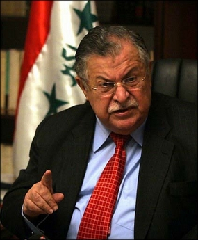 He criticized the recommendation by the Iraq Study Group calling for increasing the number of US troops embedded with Iraqi units to train Iraq's forces from 3,000 to 4,000 currently to 10,000 to 20,000. "It is not respecting the desire of the Iraqi people to control its army and to be able to rearm and train Iraqi forces under the leadership of the Iraqi government," he said during an interview with several reporters in his office in Baghdad. Talabani was the most senior government official to take a stand against the report, which has also come under sharp criticism from American conservatives who claim it amounts to a veiled surrender in the war against terror. Outgoing Secretary of Defense Donald H. Rumsfeld, in a surprise farewell visit to US troops in Iraq this weekend, said the consequences of the war's failure would be "unacceptable." "We feel great urgency to protect the American people from another 9/11 or a 9/11 times two or three. At the same time, we need to have the patience to see this task through to success. The consequences of failure are unacceptable," Rumsfeld said at Asad air base in western Iraq. "The enemy must be defeated." Talabani said the Iraqi government planned to send a letter to President Bush "expressing our views about the main issues" in the report. He would not elaborate. "I believe that President George Bush is a brave and committed man and he is adamant to support the Iraqi government until they've reached success," Talabani said. He said setting conditions was "an insult to the people of Iraq." Talabani's criticism of US training was directed at a key part of the study group's recommendation, which called for accelerated training of Iraqi forces and the withdrawal of most US combat troops by the first quarter of 2008. Some US military experts have expressed concern that Iraqi forces will not be ready to assume full responsibility for the fighting by then. However, opposition to the war is rising within the United States, increasing pressure on Bush to shift strategy. A roadside bomb killed one US soldier and wounded another Sunday west of