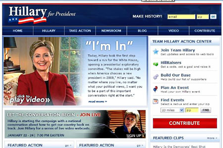 Hillary launches 2008 presidential bid(AFP)Updated: 2007-01-21 08:49 NEW YORK - Declaring "I'm in to win," Democratic Senator Hillary Clinton launched her 2008 presidential bid that could make her the first female president of the United States.