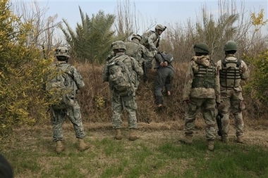 The biggest attack took place in the center of Hillah, a city about 60 miles south of Baghdad. Police and witnesses said the two bombers strolled into the Maktabat market about 6 p.m. when the area was packed with shoppers buying food for the evening meal. One of the bombers detonated his explosives when he was approached by police and the other blew himself up moments later, according to police spokesman Capt. Muthanna Khaled, who gave the casualty figures. Baghdad television stations reported death figures as high as 57, but they could not be confirmed. The blasts sent bodies hurling through the air and set fire to wooden stalls where vendors sold fruits and vegetables, witnesses said. Shoppers fled screaming in panic, while others stopped to help rescuers carry away the wounded. Dr. Mohammed Diya of the Hillah General Hospital said some of the wounded were in critical condition, raising concern the death toll could rise. Qassim Abed Sadah, 33, a bookseller, said the first explosion blew him out of his chair. He raced to the door of his shop just as the second blast occurred. "People were flying in the air," he said. Mahdi Latif, 35, a fruit vendor, said he saw a policeman motion for the first bomber to stop for a search. "Seconds later I saw a ball of fire and all I remember is me and many other people trying to flee the area," he said. Pools of blood were scattered along the market streets, along with bits of fruits and vegetables. Paramedics wearing white gloves roamed through the area removing body parts. No group claimed responsibility for the attack, the latest in a long series that have occurred in Hillah since the insurgency erupted in late 2003. The Shiite city, located in a religiously mixed province, was the scene of one of Iraq's deadliest attacks — a February 2005 suicide car bombing that killed 125 people. In Baghdad, sectarian violence flared in both Shiite and Sunni areas of the capital, where US and Iraqi forces are preparing for the third major security crackdown in a year. Six people died and 12 were wounded when a car bomb exploded on Rashid Street in the mostly Shiite heart of the city. A bomb on a public bus killed another six people and wounded eight in the upscale Shiite commercial district of Karradah. Several mortar rounds slammed into the Sunni district of Azamiyah for a third straight day, killing five people and wounding 12, according to hospital and police officials. "What have we done to be attacked like this almost every day?" asked Saad Abdul-Karim, 50, whose son was wounded when one of the rounds struck their home. Police found the bullet-riddled bodies of 33 men scattered across the Iraqi capital, the Interior Ministry said. Most showed signs of torture and were believed to be the victims of Shiite and Sunni death squads. Elsewhere, a US soldier died Thursday of wounds suffered two days ago in
