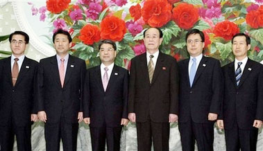 North Korea "will make efforts to realize it," he told South Korean Unification Minister Lee Jae-joung in Pyongyang. Lee pressed for North Korea to follow through on its breakthrough Feb. 13 agreement with the US and four other countries to shut down its sole operating nuclear reactor in 60 days, and to eventually dismantle all its atomic programs. "It is important to make efforts to ensure that South and North Korea cooperate and six countries each assume their responsibilities," Lee said. Kim Yong Nam also called for the two Koreas to work together to reunify the peninsula, which was divided after World War II and remains officially at war since the 1950-53 Korean War ended in a cease-fire, not a peace treaty. As talks resumed Friday, the two sides agreed to resume reunions of families split across their border. A South Korean official said on condition of anonymity due to the sensitivity of the ongoing talks that reunions over a video link will be held this month, with face-to-face meetings set for May. The reunions are a highly emotional issue between the North and South as many of those hoping to see relatives are elderly and running out of time to see their families. Millions of Koreans were separated following the division of the Korean peninsula in 1945 and the 1950-53 Korean War. The North had been expected to agree this week to restarting the reunions, which were put on hold last year after the missile tests. South Korea has been one of the North's main aid sources since the two nations held their first and only summit in 2000. This week's meetings are the 20th Cabinet-level talks since then. But South Korea halted rice and fertilizer shipments to the North after it test-fired a barrage of missiles last July, and relations worsened following North Korea's Oct. 9 underground nuclear test. South Korea has been hesitant at this week's talks, which run through Friday, to immediately restart aid without seeing the North take real steps to dismantle its nuclear program. The North wants to resume separate discussions this month on economic cooperation that would address aid, but South Korea prefers to wait until after April 14 -- the deadline for Pyongyang to switch off its nuclear reactor, pool reports from South Korean journalists at the talks said. However, the South may offer a limited amount of fertilizer if the North agrees to other conditions, the pool reports said. The sides may also agree on conducting trial runs of trains on restored rails across the border. Earlier over dinner, the North's main negotiator at the talks, Senior Cabinet Councilor Kwon Ho Ung, said "a wide road will be opened for the drastic development of North-South relations" if certain measures are implemented. He did not specify them. Last month's six-nation nuclear agreement has raised hopes it will foster a relaxation of regional tensions, since the deal also provides for North Korea to hold talks to normalize ties with Japan and the United States, both of which are scheduled to begin next week. The nuclear pact also calls for negotiations to finally establish a peace agreement between the Koreas. South Korea's President Roh Moo-hyun urged in a speech Thursday in Seoul that the agreement "be successfully implemented so that a peace regime can be firmly established on the Korean peninsula." Amid intense diplomacy to ensure the disarmament deal goes forward, the US State Department's No. 2 diplomat, John Negroponte, arrived in Japan Thursday on the first stop of an Asian trip expected to focus on the North Korea issue. He will also visit South Korea and China. Meanwhile, South Korean Foreign Minister Song Min-soon left Thursday for Washington for talks with Secretary of State Condoleezza Rice on North Korea. He is also set to travel to Moscow. |