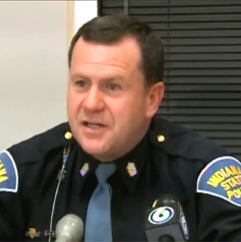 In this screen grab from AP video, Indiana State Police spokesman 1st Sgt. Dave Bursten talks about the 'intentional' Indiana plane crash into a house in Bedford, Indiana, March 5. [AP]