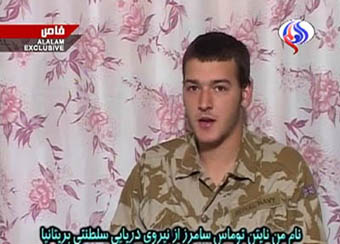 Prime Minister Tony Blair voiced his "disgust" at the latest broadcast of the captive Britons and Foreign Secretary Margaret Beckett said she saw no sign that Iran was seeking to solve the crisis. "We've got to pursue this with the necessary firmness and determination but also patience," Blair said. Tehran has so far refused to bow to mounting world pressure to release the 14 men and one woman seized in the northern Gulf a week ago and now being held in a secret location. Britain insists they were on a routine anti-smuggling patrol in Iraqi waters under a UN mandate but Iran says they were in its territorial waters. "I would like to apologise for entering your waters without any permission," the Royal Navy serviceman, identified as Nathan Thomas Sommers, said in an interview broadcast on Iran's Arabic-language Al-Alam television. The interview was interspersed with images of the sailor sitting with two of his comrades, including the only woman, Faye Turney, smiling, and with bowls of fruit and flowers in front of them. Turney's latest letter, released by Iranian authorities in London, calls for British troops to withdraw from Iraq. Paul Beaver, a leading defence expert, said Turney's pullout call suggested