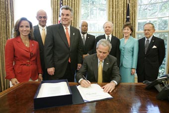 Looking on are (L-R) Homeland Security Advisor Fran Townsend, Homeland