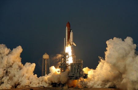 The space shuttle Endeavour lifts off from its launch pad at the Kennedy Space Center in Cape Canaveral, Florida, August 8, 2007. Endeavour blasted off on Wednesday for a construction mission to the International Space Station, carrying a former teacher who first trained for space flight with the ill-fated Challenger crew. [Reuters]
