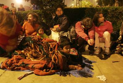 People prepare to spend the night outside their homes in Lima's port of Callao, after an earthquake struck Peru, August 15, 2007. [Reuters]