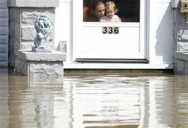 The water forced at least 500 people to flee their homes in several northern Ohio towns. Rising water forced authorities to move about 130 inmates at the county jail in Findlay to a regional prison. Many neighborhood rescuers showed up with canoes and kayaks wanting to help during Findlay's worst flooding in nearly 100 years. Three men in a fishing boat ferried a mother and her 2-week-old daughter along with the family dogs. "That was the catch of the day," said Angel Sanchez, the baby's neighbor. Milk jugs, garbage bags and soda cans floated in the murky water. Tom Woods took his 8-foot fishing boat to help float out friends stranded in the neighborhood. "Once we got here, everybody asked us to rescue more people," he said. The Blanchard River was 7 feet above flood stage Wednesday at Findlay, the highest since a 1913 flood, and could rise another half-foot or more, the National Weather Service said. The rain subsided by mid-afternoon, and the National Weather Service issued a heat advisory for much of the state, with temperatures expected to hit the upper 90s. In Bucyrus, 40 miles to the southeast, nearly 9 inches of rain had fallen since Monday and at least 200 people were still out of their homes, the Crawford County Department of Emergency Management said. "Reality is starting to set in about just how much damage there is in some of the flooded areas," said Tim Flock, director of the agency. Gov. Ted Strickland declared states of emergency in nine counties in northwest and north-central Ohio, including Crawford County and Findlay's Hancock County. The death toll from two storm systems - one that has spanned the Upper Midwest and another from remnants of Tropical Storm Erin in Texas, Oklahoma and Missouri - reached 22 on Tuesday when searchers found the body of a man tangled in a tree near Lewiston, Minn. Flooding also continued in northern Iowa as thunderstorms dumped more heavy rain across the already water-logged region Wednesday. Three subdivisions along the Des Moines River near Fort Dodge were evacuated, and crews used rocks and sandbags to shore up a levee that had begun to give way, officials said. |
