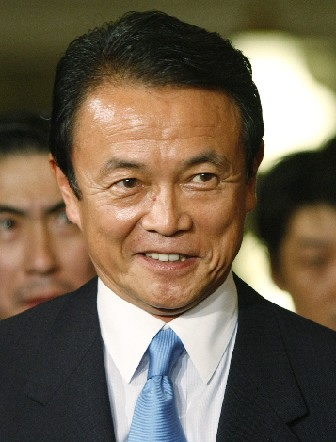 | Japan's ruling Liberal Democratic Party secretary general Taro Aso (C) smiles as he heads to a party meeting at the parliament in Tokyo September 12, 2007, after Japanese Prime Minister Shinzo Abe abruptly announced his resignation. [Reuters] |