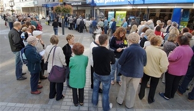 Police were called in some cities to steer panicked crowds away as Northern Rock bank branches closed for the day. Fears have spread over the bank's request earlier in the week for an emergency Bank of England loan amid the global credit crisis. Northern Rock, Britain's fifth-largest mortgage lender, is the first British bank in 15 years to be bailed out by regulators. Customers withdrew $2 billion from the bank Friday, The Financial Times reported, citing an unidentified person described as close to the situation. The bank declined to confirm the figure, which represents 4 percent of its deposit base. Treasury chief Alistair Darling and the country's Financial Service Authority tried to assure customers there was no doubt over Northern Rock's solvency. The authority "has reiterated yet again tonight that it is satisfied that Northern Rock is solvent, can carry on doing business and, crucially, paying out money if people want to withdraw their funds," Darling said on Channel 4 TV on Saturday night. But The Sunday Telegraph said Northern Rock was preparing itself for a sell-off. Quoting unidentified sources, the paper said one plan would divide the bank's mortgage portfolio between other major banks in what would be a private-sector rescue of the lender. The bank made the loan request Thursday because it relies heavily on wholesale money markets for cash, and had been unable to borrow the amounts it required from other banks since the money markets choked up last month. That was caused in part by US banks making mortgage loans to Americans with poor credit histories. Although Northern Rock requested substantial emergency funds at a penalty rate, the bank has said it had billions of pounds in cash at its disposal. It has yet to draw on any emergency funding. Despite Darling's message, lines stretched around the block Saturday at some of the bank's 76 branches in Britain and the bank extended opening hours to deal with the situation. "Yes, we are making matters worse, but I do think people need some reassurance from Northern Rock and the government and financial services that their money is safe," account holder Jane Taylor told Sky News while waiting outside a branch in Kingston-upon-Thames, west of London. But others said they had faith in the bank and financial authorities and watched the lines in disbelief. "It's mostly, in my opinion, ignorance and that's why they're panicking," said another bank customer who gave only his first name, Tom. "I'm leaving mine there." Under Financial Services Compensation Scheme, deposits of up to $63,900 are guaranteed should a bank default. Ron Stout, a spokesman for Northern Rock, told The Associated Press that reckless comments by some analysts about the bank's solvency prompted customers to panic and line up outside branches or strain the company's online banking system. He said Northern Rock would continue to extend its banking hours, by opening one hour ahead of schedule on Monday, and to reassure customers that their investments are safe with the bank. |