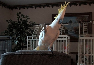 Whenever they play the 1997 song "Everybody (Backstreet's Back)," the 11-year-old medium sulfur-crested Eleonora cockatoo lifts his legs, squawks and bobs his head, flashing his bright yellow crest to the beat. Television programs "Inside Edition" and "The Morning Show with Mike and Juliet" have featured Snowball's moves. The couple says people from around the world have contacted them after seeing the bird dancing on the video-sharing site YouTube or elsewhere. The couple runs a rescue shelter for birds called Bird Lovers Only Rescue. "He makes a great spokesbird for the rescue," Chuck Schulz said. Snowball joined the family a couple of months ago. The man who dropped him off brought a CD and said to watch Snowball's reaction. Irena Schulz said she almost fainted at the sight of the bird dancing to the beat. "I'm thinking, 'What on Earth is this? This is unreal,'" she said. Irene Schulz said most of their birds can be adopted to a good home, but not Snowball. "He's my baby," she said. "He will stay here and be loved." |