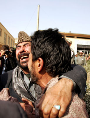 Updated: 2007-11-07 22:39 ![]() Relatives of one of the six Afghan members of parliament who was a victim in Tuesday's suicide bombing, grieve after the coffins were brought into the capital Kabul, November 7, 2007. Afghans began three days of national mourning on Wednesday for 41 people, many of them children, killed in the country's worst suicide attack. [Agencies] |