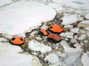 Unoccupied lifeboats are seen after the sinking of the M/S Explorer cruise ship which hits an iceberg off the coast of the Antarctic, in this photo released by the Chilean Army November 23, 2007. More than 150 passengers and crew escaped unhurt after the M/S Explorer hit ice in the Antarctic and started sinking on Friday, the ship's owner and coast guard officials said. [Agencies]