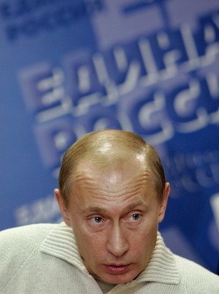 Russia's President Vladimir Putin speaks during a meeting with supporters in St.Petersburg November 26, 2007. Putin said on Monday Russia had information suggesting the United States influenced a decision by OSCE international observers not to monitor the December 2 parliamentary election. [Agencies]