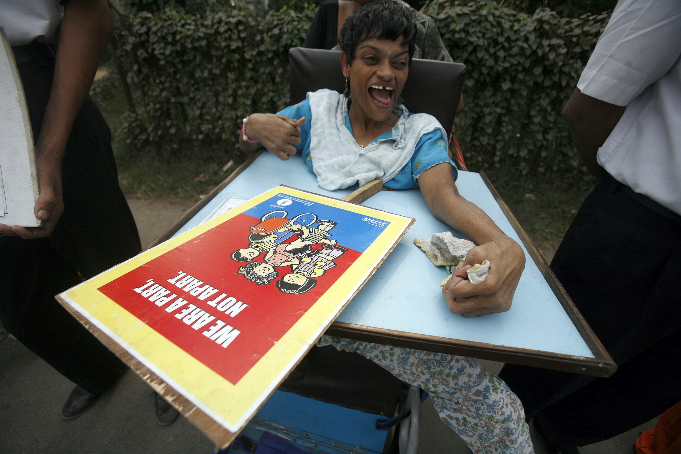 A physically challenged girl takes part in a human chain to observe the International Day of Disabled Persons in the eastern Indian city of Kolkata December 3, 2007. [Agencies]