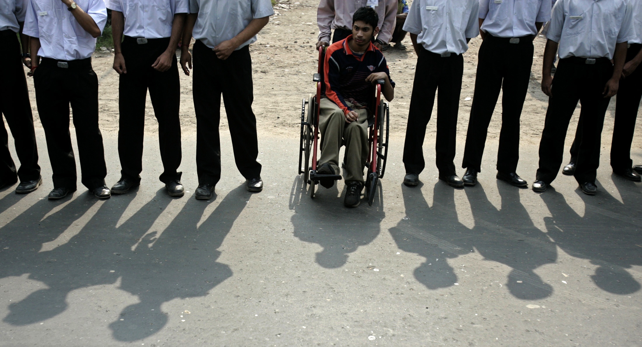 A physically challenged boy takes part in a human chain to observe the International Day of Disabled Persons in the eastern Indian city of Kolkata December 3, 2007. [Agencies]