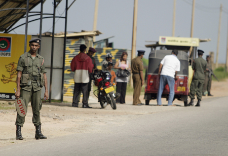An army soldier stands guard at a road side checkpoint in Colombo January 3, 2008. [Agencies]