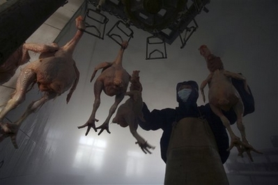 A worker is seen at a poultry processing factory in Changzhi, Shanxi province, Saturday, Jan 5, 2008. Bird flu has killed 4,850 poultry in Turpan, northwest China's Xinjiang Uygur Autonomous Region, Xinhua News Agency said Friday. The outbreak occurred in Turpan, a city in the Xinjiang region, on Dec. 29 and a state laboratory confirmed the presence of the pathogenic H5N1 virus on Thursday. [Agencies]