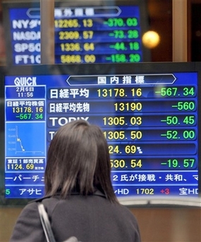 Updated: 2008-02-06 14:01 BANGKOK - Asian markets plunged Wednesday after a steep drop on Wall Street overnight fanned investors' fears the US economy was sliding into a recession that would sap demand for Asian exports. In Hong Kong, the benchmark index plunged more than 6 percent in morning trading, while Japan's Nikkei 225 index sank more than 4 percent. "It's unbridled pessimism," said Francis Lun, general manager at Fulbright Securities Ltd. in Hong Kong. "Everyone is concentrating on US recession, but Europe is also looking bad. ... We are in for a bear market now." Economic data Tuesday showing the US service sector shrank last month for the first time since March 2003 wiped out nascent optimism about the American economy that had lifted global markets last week. The news sent the Dow Jones industrial average plunging 370 points, or 2.93 percent, its largest one-day percentage drop since Feb. 27, 2007. Asian markets have dropped sharply from the beginning of the year amid worries about a US - and global - slowdown. Many stocks rebounded some over the last two weeks after the US Federal Reserve made two big interest rate cuts to shore up the weakening American economy. But pessimism returned after the Institute for Supply Management reported Tuesday that its index of activity in the US service sector, which accounts for about two-thirds of the economy there, dropped below 50, indicating contraction. It was the first time the service sector reading has contracted since March 2003. European markets also sank Tuesday in reaction to the news, with the UK's FTSE 100 Index sliding 2.6 percent and France's CAC-40 Index tumbling 4 percent. Asian investors also appeared increasingly anxious about a slump in Europe, another vital export market. "There's a real probability that both the US and Europe will go into recession at the same time," Lun said. "It's a financial mess on the two continents with the subprime crisis and the SocGen debacle." The financial world, already battered by mounting bad assets from defaults on risky US mortgages, was dealt another blow last month when major French bank Societe Generale said late last month that it had lost 4.8 billion euros ($7.1 billion) in cleaning up unauthorized transactions by a rogue trader. In Tokyo on Wednesday, the Nikkei 225 index was down 4.13 percent at 13,178.2 points at the midday break, while Hong Kong's Hang Seng index tumbled as much as 6.1 percent to 23,283.61 in morning trading. Australia's key index fell nearly 3 percent, while Thailand's market was down 2.4 percent. |