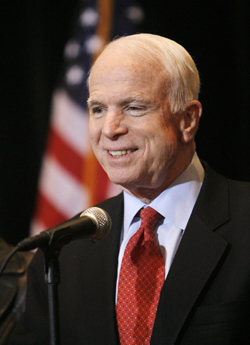 Republican US presidential candidate Senator John McCain (R-AZ) addresses members of the media during a campaign stop in Columbus, Ohio, February 20, 2008. [Agencies]