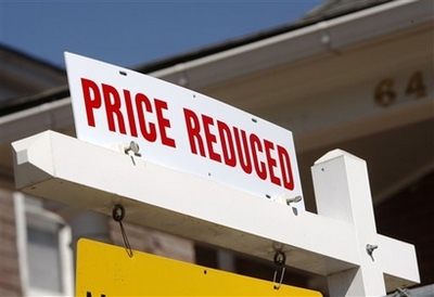 A realty sign indicating a reduced price stands out a home for sale in south Denver on Sunday, March 23, 2008. A widely watched index of US home prices fell 11.4 percent in January, its steepest drop since data for the indicator was first collected in 1987. [Agencies]