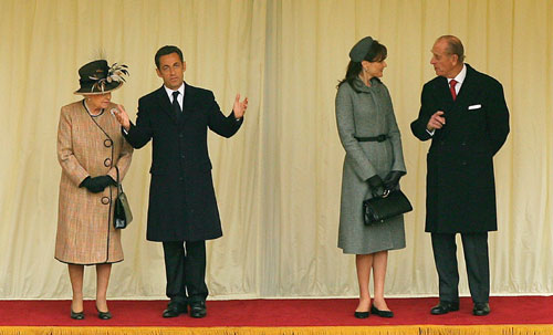 French president Nicolas Sarkozy (2nd L) speaks with Britain's Queen Elizabeth (L) as France's first lady Carla Bruni (2nd R) speaks with Britain's Prince Philip at Windsor Castle in Windsor, southern England March 26, 2008. French President Sarkozy arrived in London on Wednesday on a state visit he hopes will improve cooperation with Britain on illegal immigration, defence and the economy. [Agencies]