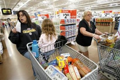 That has consumers like Laura Miller taking a calculated approach to shopping, much of which she does at Wal-Mart in Santa Clarita, California, a planned community on the outskirts of Los Angeles. Married with three little girls, Miller said her food costs have almost doubled to $300 every two weeks. "I won't pay $6 for a box of cereal when I can get it for $3" at Wal-Mart, she said. Karen Wikholm, a library worker from Romeoville, is another who does her homework before heading to the store, sorting through newspaper ads, hashing out which stores offer the best deals and figuring out where her coupons can go farthest. She then gets in her car and, in one day, goes to her local Wal-Mart, Dominick's and Jewel grocery stores, buying only what is cheapest in each store. The three stores are located about a mile from each other on a stretch of road that includes several strip malls interspersed with vacant plots for planned housing developments. "We're shopping as the paycheck comes," she said. Payday means grocery day Increasingly, shoppers like Wikholm must wait until payday to load up on groceries and then hunker down until the next paycheck. At all three Wal-Mart stores, that trend was visible. The Wal-Mart in Secaucus, a few miles outside New York, operated at a leisurely pace on the afternoon of Monday, March 31. Shoppers slowly browsed store aisles or stopped at the in-store McDonald's for a snack. |