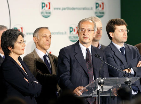 Italy's centre-left leader Walter Veltroni concedes defeat at Democratic Party (PD) headquarters in Rome April 14, 2008. [Agencies] |
