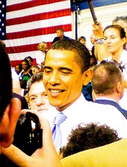Democratic Presidential Candidate Barack Obama moves through the crowd after a rally at UNC Wilmington, North Carolina on April 28. [Agencies]