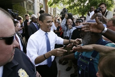 Democratic presidential hopeful, Sen. Barack Obama, D-Ill., greets supporters in Raleigh, N.C.,Tuesday, May 6, 2008. [Agencies]