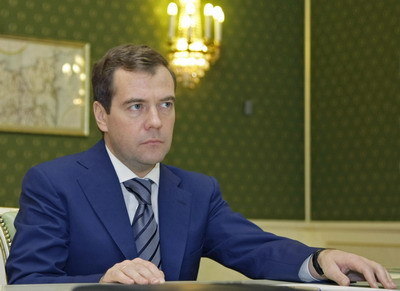 Russian president-elect Dmitry Medvedev attends a meeting in the Kremlin in Moscow May 6, 2008. Russian President Vladimir Putin is handing over to his successor a booming economy, bumper currency reserves and a major headache over how to stop the rosy economic picture from turning bad. [Agencies]