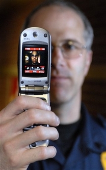 Connecticut State Police Sgt. Jim Smith of the state police cybercrimes unit poses with a cell phone in Windsor Locks, Conn., May 22, 2008. Smith conducts seminars in which he warns parents about the use of cell phones to send nude pictures. [Agencies]