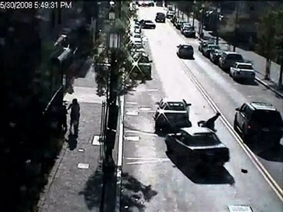 This still image taken from a surveillance video and provided by the Hartford Police Department shows a man, up-ended, in the lower right corner of the frame just as a car hits him, Friday May 30, 2008 in Hartford, Conn. The 78-year-old man was tossed like a rag doll by a hit-and-run driver, and car after car zoomed by as he laid motionless on the busy city street. The victim, Angel Arce Torres, was in critical condition in Hartford Hospital. Authorities say he is paralyzed. [Agencies]