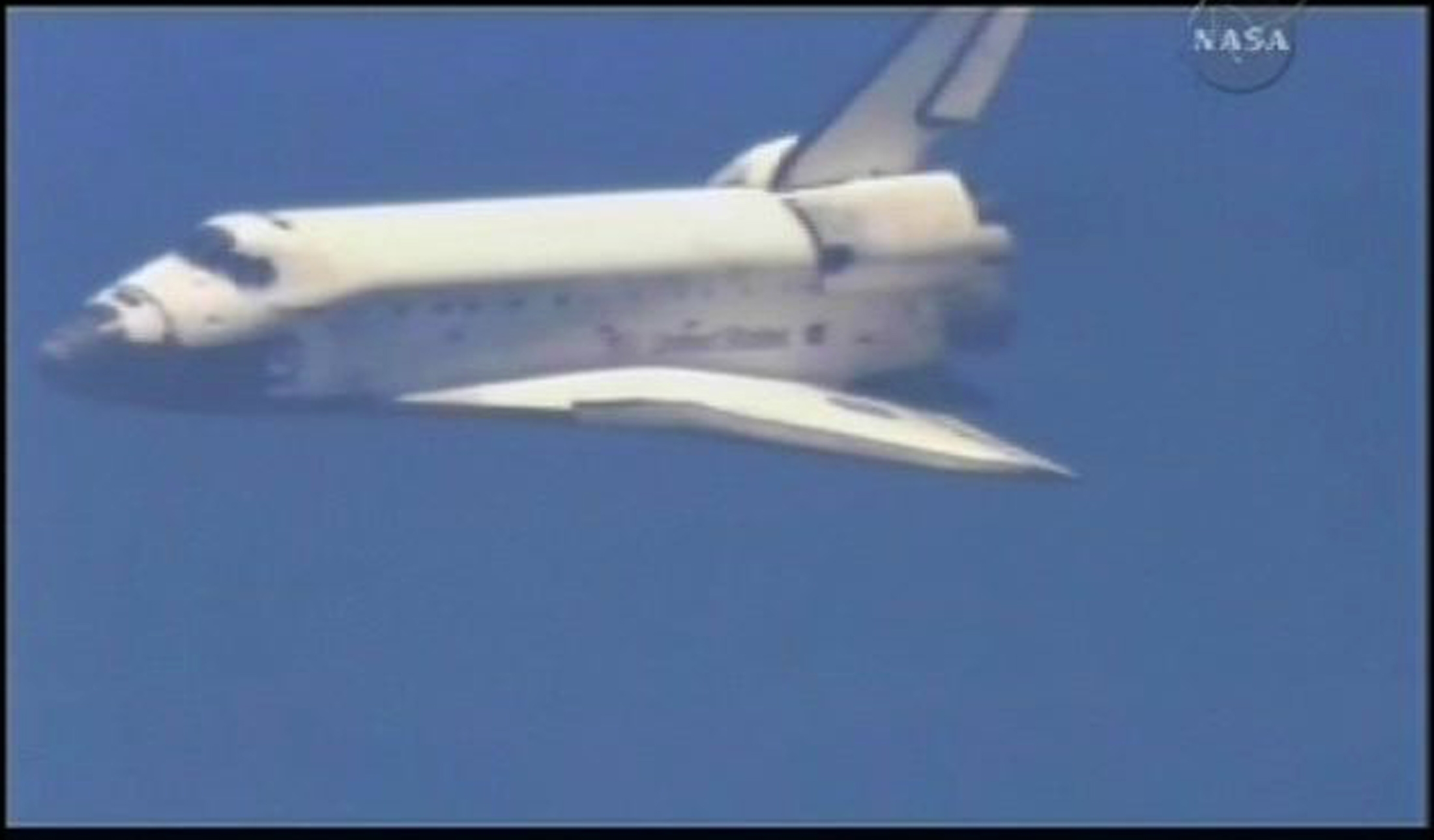 The Space Shuttle Discovery approaches the runway at the Kennedy Space Center in Florida for landing after delivering the Japan Aerospace Exploration Agency's Kibo laboratory to the International Space Station in this image from NASA TV June 14, 2008. [Agencies] |