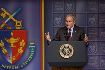 In a speech at the National Defense University, Bush said that improving conditions in Iraq will allow a "quiet surge" of American troops to Afghanistan, where there has been a resurgence of the Taliban and a growth in violence. Bush said he is making the move based on a recommendation from top military officers, including David Petraeus, the highest-ranking US military officer in Baghdad. "Petraeus and the Joint Chiefs of Staff have recommended that we move forward with additional force reductions," the president said. "Over the next several months, we will bring home about 3,400 combat support forces -- including aviation personnel, explosive ordnance teams, combat and construction engineers, military police, and logistical support forces. By November, we will bring home a Marine battalion that is now serving in Anbar province. And in February of 2009, another Army combat brigade will come home," he said. "This amounts to about 8,000 additional American troops returning home without replacement. And if the progress in Iraq continues to hold, Petraeus and our military leaders believe additional reductions will be possible in the first half of 2009," Bush said. But any further troops will be made by his successor, and Bush will be out of office by then. "While the enemy in Iraq is still dangerous, we have seized the offensive, and Iraqi forces are becoming increasingly capable of leading and winning the fight," he added. |