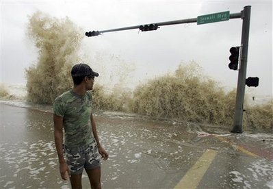 But even as towering waves started crashing over the 17-foot Galveston seawall and floodwaters rose in low-lying areas, it became clear that many of the 1 million coastal residents who had been ordered to get out refused to do so and were taking their chances. Authorities in three counties alone said roughly 90,000 stayed behind, despite a warning from forecasters that many of those in one- or two-story homes faced "certain death." "I believe in the man up there, God," said William Steally, a 75-year-old retiree who planned to ride out the storm in Galveston without his wife or sister-in-law. "I believe he will take care of me." At about 600 miles across, the hurricane was a monster, taking up almost the entire northern half of the Gulf of Mexico. As it zeroed in on the coast, it trapped 60 people who had to be rescued from the floodwaters near Galveston by helicopter, breached levees in rural Louisiana, and tossed around a disabled 584-foot cargo ship in the Gulf. Before sunset Friday, power had been knocked out to 70,000 customers along the coast, including 15,000 in Galvaston. That number that was expected to climb quickly throughout the night, according to Centerpoint Energy, the primary electricity provider for the region. As of 7 p.m. EDT, Ike was centered about 100 miles southeast of Galveston, moving at 13 mph. It was close to a Category 3 storm with winds of 110 mph, and was expected to strengthen by the time the eye hit land. Forecasters predicted it would come ashore somewhere near Galveston late Friday or early Saturday and pass almost directly over Houston. Because of the hurricane's size, the state's shallow coastal waters and its largely unprotected coastline, forecasters said the biggest threat would be flooding and storm surge, with Ike expected to hurl a wall of water two stories high -- 20 to 25 feet -- at the coast. |