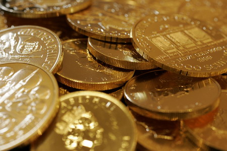 Gold coins are displayed at the Ginza Tanaka store in Tokyo September 18, 2008. Gold prices eased into negative territory as concerted central bank action to address liquidity in the money markets helped risk appetite recover, crimping safe haven buying of gold, analysts said. [Agencies]