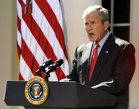 US President George W. Bush makes a statement in the Rose Garden after the House passed the $700 billion financial rescue legislation, October 3, 2008 in Washington.  [Agencies]