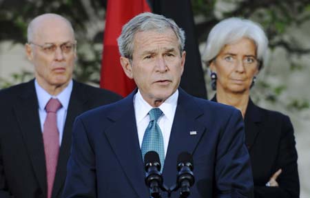 President Bush invited Paulson and Federal Reserve Chairman Ben Bernanke and their counterparts from the other G-7 countries to come to the White House Saturday morning for a meeting that the administration hoped would demonstrate global resolve in attacking the current crisis. Bush, speaking on the economic chaos for the 21st time out of the past 26 days, said Friday that the government's rescue program was aggressive enough and big enough to work. "We can solve this crisis and we will," he pledged. The G-7 officials wrapped up three hours of closed-door talks Friday with one of the shortest joint communiques in the history of the group. It was also the most direct in its promise to take "all necessary steps to unfreeze credit and money markets" to end a severe credit crisis that began in the US a year ago but since has spread worldwide and has grown in furiosity. Fears that banking systems had essentially frozen up have sent worried investors rushing for the exits. The Dow Jones industrial average just completed its worst week in history and has plunged by nearly 2,400 points over the past eight trading sessions. Over the last year, investors have suffered $8.4 trillion in paper losses. |