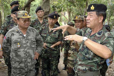 The decision of the Joint Border Committee came a day after fighting broke out on Wednesday's afternoon between soldiers of both countries near the ancient Preah Vihear temple which left two Cambodian soldiers killed and five Thai soldiers wounded, according to the Thai News agency. Meanwhile, Thai army spokesman Col. Sansern Kaewkamnerd said the two sides agreed that joint patrols could "reduce chances of a misunderstanding that could lead to another clash." However, forces and heavy weapons will remain along the border, Wibulsak said. The Joint Border Committee will meet again on October 21 to discuss about the matter further. |