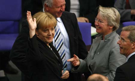 Updated: 2008-10-18 10:26 Germany's Bundestag lower house of parliament approved a 500 billion euro ($673.8 billion) bank rescue package on Friday that Chancellor Angela Merkel hopes will restore confidence in a shaken financial system. A large majority of 476 out of 576 parliamentarians voted in support of the package, which will come into effect on Monday if it wins approval in the Bundesrat upper house. Ninety-nine lawmakers voted against the plan, and one abstained. "We hope that the law passed today will hinder the worst from happening to the financial markets," said Peter Struck, parliamentary leader for the Social Democrats, which make up half of Chancellor Angela Merkel's coalition government.