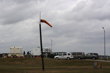 NASA employees work on tracking cameras near the Shuttle Landing Facility before the landing of the space shuttle Endeavour was cancelled due to bad weather at the Kennedy Space Center in Cape Canaveral, Florida November 30, 2008. NASA rerouted the space shuttle Endeavour to land in California on Sunday after it skipped landing at the Kennedy Space Center in Florida because of bad weather. [Agencies]
