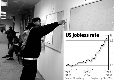 Hiring plans by US employers for the first quarter of next year held near a five-year low, signaling a weak labor market will persist into 2009, according to a private survey. Manpower Inc, the world's second-largest provider of temporary workers, said its employment gauge for January through March climbed to 10 from a reading of 9 in the last three months of this year, the lowest since 2003. The highest jobless rate in 15 years, falling property values and the credit crunch signal companies are unlikely to expand. Cutbacks in consumer spending are pushing the US economy deeper into what may become the longest recession in seven decades. "A majority of employers are carefully monitoring the uncertain economic environment prior to making any additional employment decisions," Jeffrey Joerres, chief executive officer of Milwaukee-based Manpower, said in a statement. Employers cut 533,000 workers from payrolls in November, the most since 1974 and the 11th consecutive decline, while the unemployment rate jumped to 6.7 percent, the Labor Department said last week. Manpower's index subtracts the percentage of employers planning to cut jobs from those who plan to add them, and adjusts the results for seasonal variations. On that basis, the net employment outlook fell from 17 in the first quarter of 2008. The survey was taken in the last two weeks of October. Employers in nine of 13 industries surveyed anticipated staff increases, led by mining and professional and business services. Construction employers had the weakest employment outlook, followed by manufacturers. Agencies (China Daily 12/10/2008 page16) |