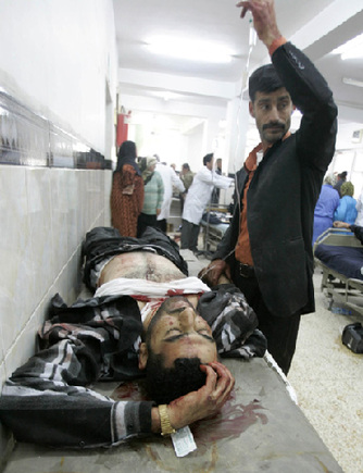 A resident who was wounded in a bomb attack waits for treatment in a hospital in Kirkuk, 250 km (155 miles) north of Baghdad December 11, 2008. A suicide bomber killed 55 people and wounded 120 on Thursday in a crowded restaurant near Iraq's ethnically mixed city of Kirkuk, shattering the calm during a major Muslim holiday, police said. [Agencies]