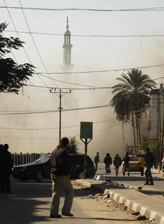 In Turkey, a Mideast diplomat who spoke on condition of anonymity because he was not authorized to speak publicly said that country would be asked to put together an international force that could help keep the peace. And diplomats in New York worked on a UN Security Council statement backing the cease-fire initiative but failed to reach agreement on action to end the violence. "We are very much applauding the efforts of a number of states, particularly the effort that President (Hosni) Mubarak has undertaken on behalf of Egypt," Secretary of State Condoleezza Rice said. "We're supporting that initiative." The army, which has refused to allow journalists into Gaza, permitted two TV teams to accompany soldiers on patrol for the first time. The footage showed soldiers walking through a deserted street in an unidentified location in Gaza. The Israeli military correspondent who accompanied the soldiers said they were concerned about Hamas booby-traps. He said they were shooting through walls, throwing grenades around corners, going from house to house looking for Hamas gunmen and using bomb sniffer dogs. Buildings showed bullet and shrapnel marks. "We used a lot of fire," said an officer in the group, Lt. Col. Ofer. Hamas, meanwhile, fired rockets, though at a slower pace than previous days, hitting the towns of Ashkelon and Beersheba with the sort of longer range missiles never seen before this war. |